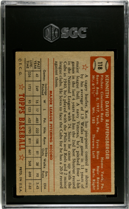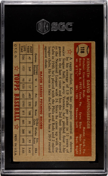 1952 Topps #118 Ken Raffensberger SGC 3.5