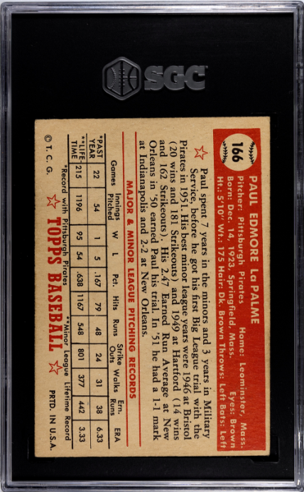 1952 Topps #166 Paul Lapalme SGC 4