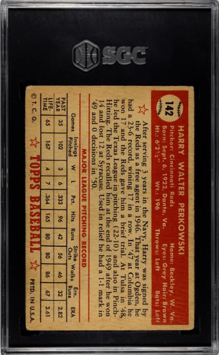 1952 Topps #142 Harry Perkowski SGC 3.5