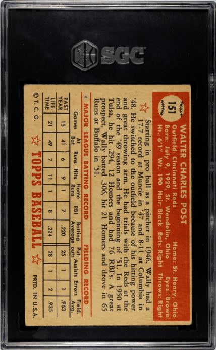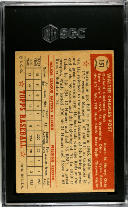 1952 Topps #151 Wally Post SGC 3.5
