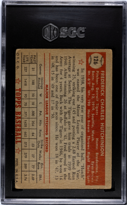 1952 Topps #126 Fred Hutchinson SGC 2.5