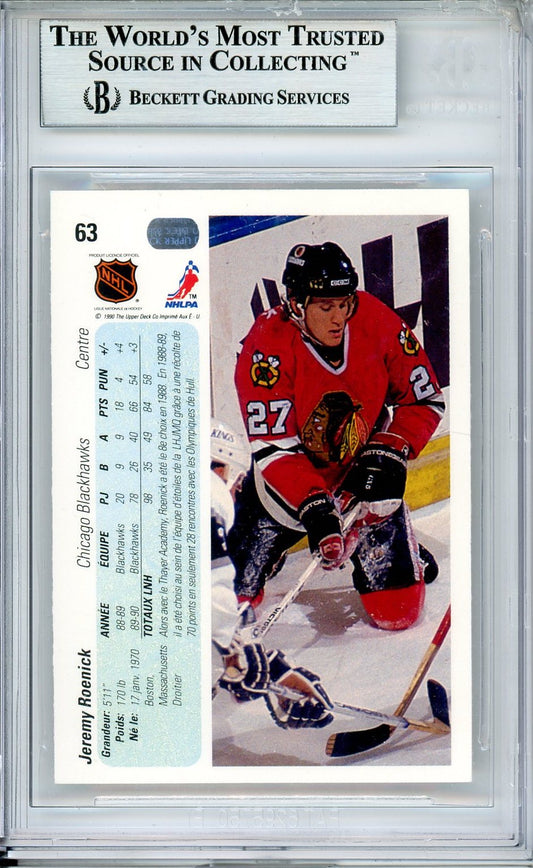 1990-91 UPPER DECK JEREMY ROENICK FRENCH AUTO #63 BECKETT BAS