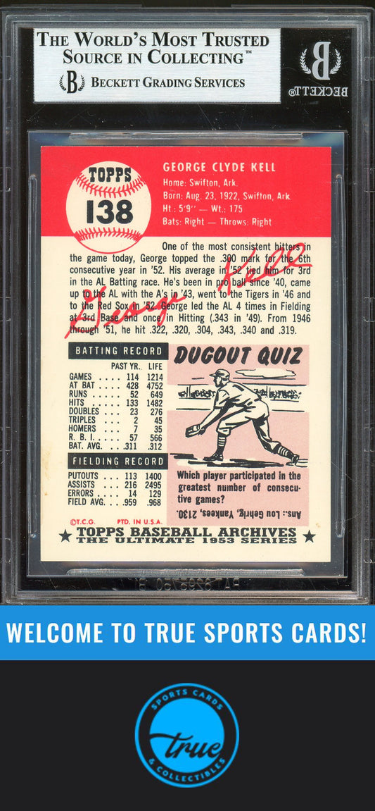 1991 Topps Archives 1953 #138 George Kell Auto BGS Authentic