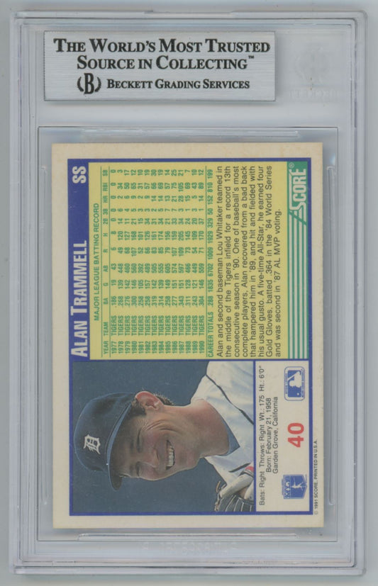 1991 Score Alan Trammell #40 Auto - Beckett Authentic