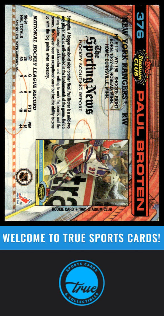 1991-92 Stadium Club #376 Paul Broten AUTOGRAPH