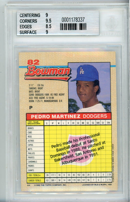 1992 BOWMAN PEDRO MARTINEZ #82 DODGERS HALL OF FAME BGS 9