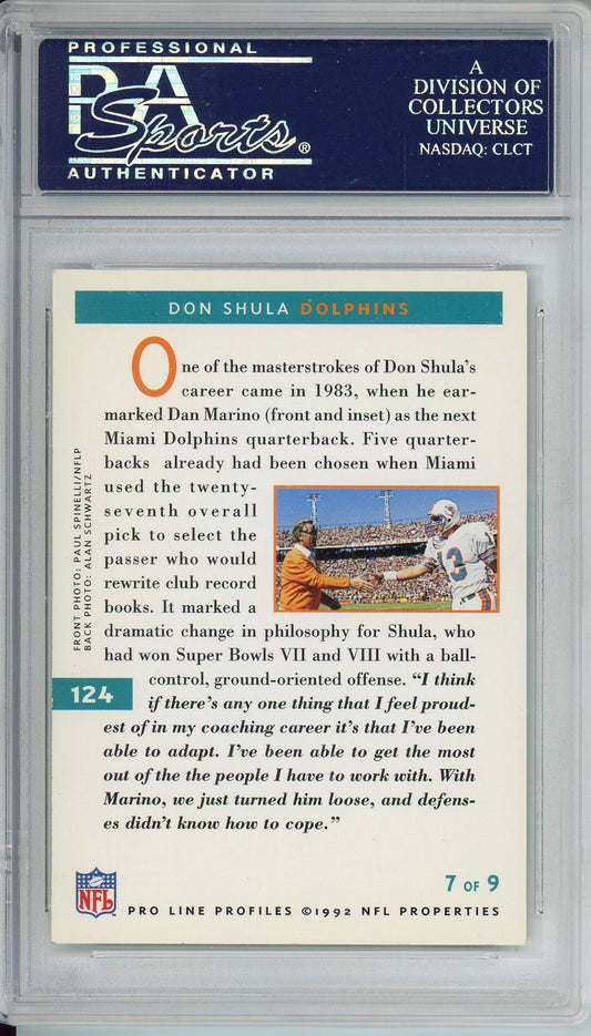 1992 PRO LINE PROFILES DAN MARINO/DON SHULA #124 PSA/DNA DUAL AUTO (8224)