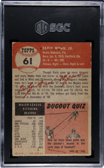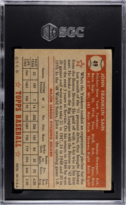 1952 Topps #49 Johnny Sain Red Back SGC A