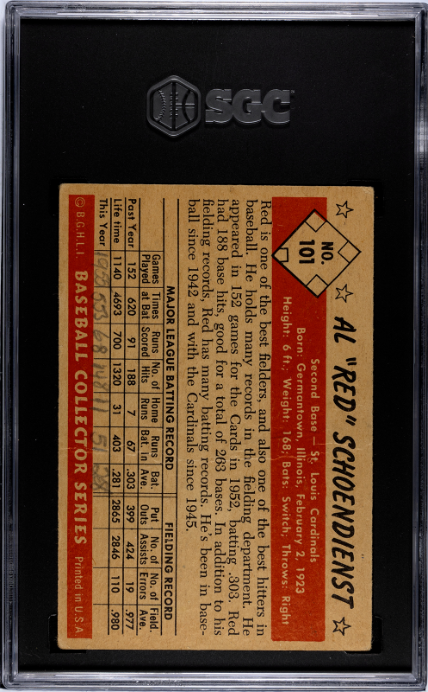 1953 Bowman Color #101 Red Schoendienst SGC Authentic
