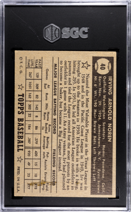 1952 Topps #40 Irv Noren Black Back SGC 4