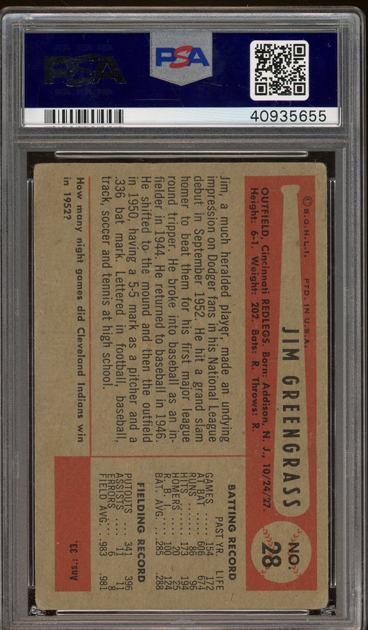 1954 Bowman #28 Jim Greengrass Birthplace Addison, N.Y. PSA 3