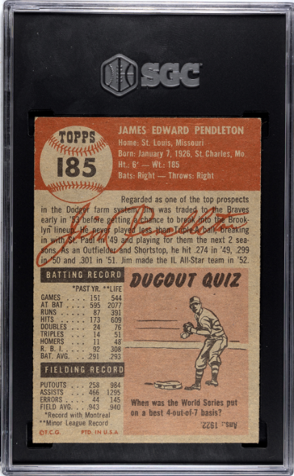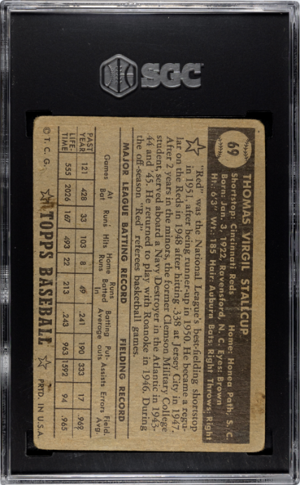 1952 Topps #69 Virgil Stallcup Black Back SGC 1.5