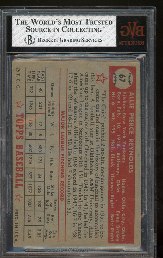 1952 Topps #67 Allie Reynolds BVG 3.5