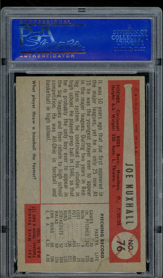 1954 Bowman #76 Joe Nuxhall PSA 6