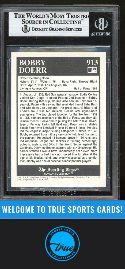 1993 Conlon Collection TSN #913 Bobby Doerr Auto BGS Authentic