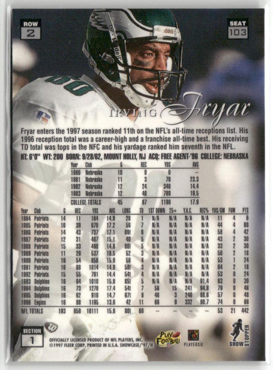 1997 Flair Showcase #103 Iriving Fryar Row 2 Autograph