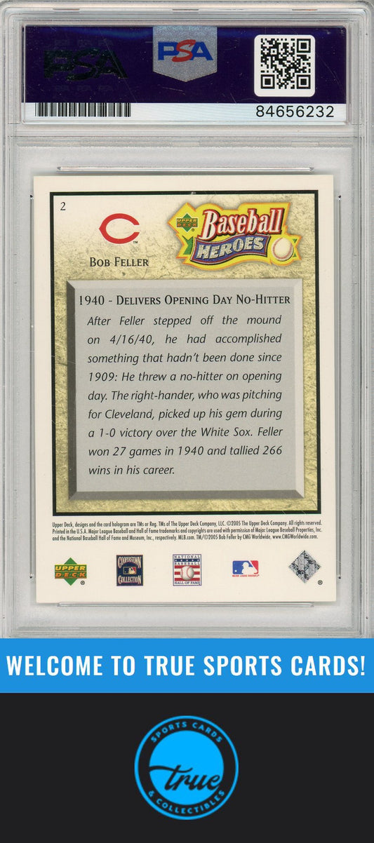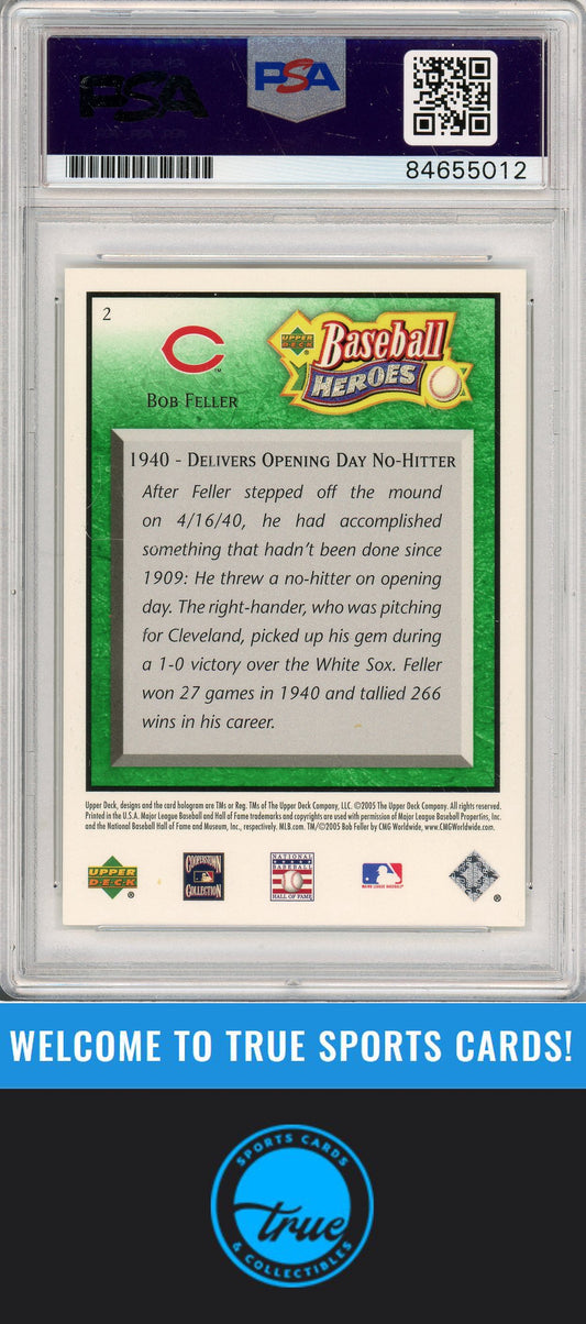 2005 Upper Deck Baseball Heroes Bob Feller Emerald Auto /199 PSA Authentic