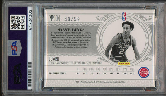 2011 Panini National Treasures #104 Dave Bing Auto Inscriptions /99 PSA/DNA AuthenticRegular price $109.95 USDRegular priceUnit price per-