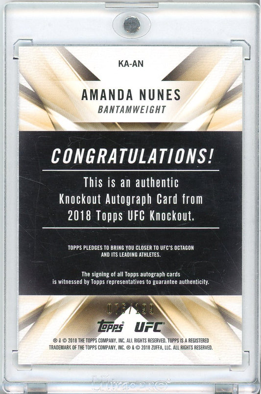2018 TOPPS UFC KNOCKOUT AMANDA NUNES #KA-AN AUTO /199Regular price $37.95 USDRegular priceUnit price per-