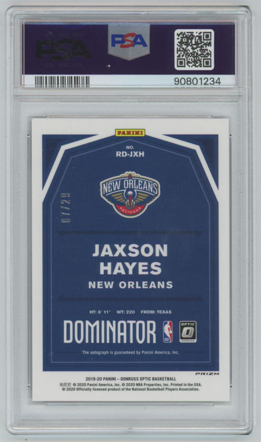 2019 Donruss Optic Jaxson Hayes Dominator Signatures Purple /29 - PSA 10