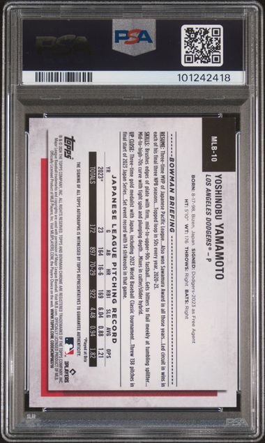 2024 NSCC Silver Pack #10 Yoshinobu Yamamoto Rookie Superfractor Auto 1/1 - PSA 9