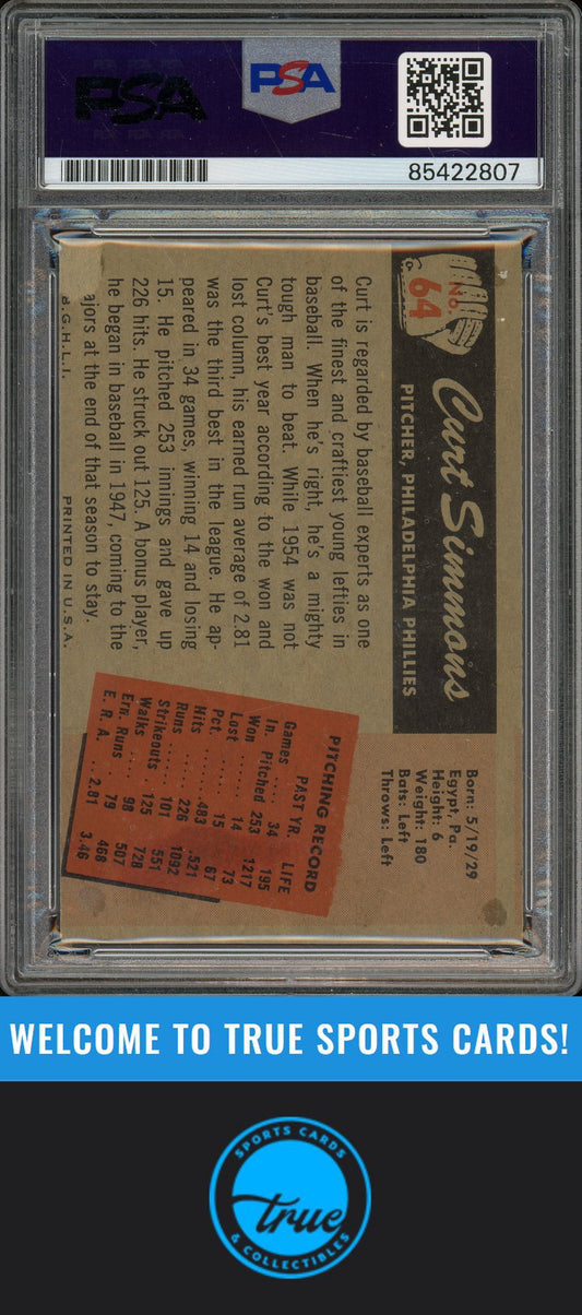 1955 Bowman #64 Curt Simmons Auto PSA Authentic (2807)
