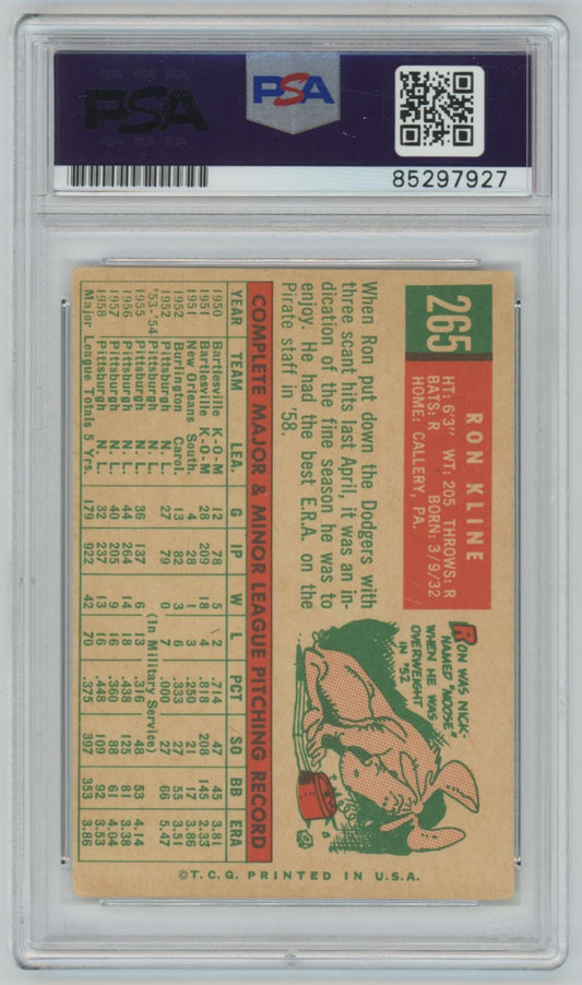 1959 Topps Ron Kline #265 Auto - PSA/DNA Authentic