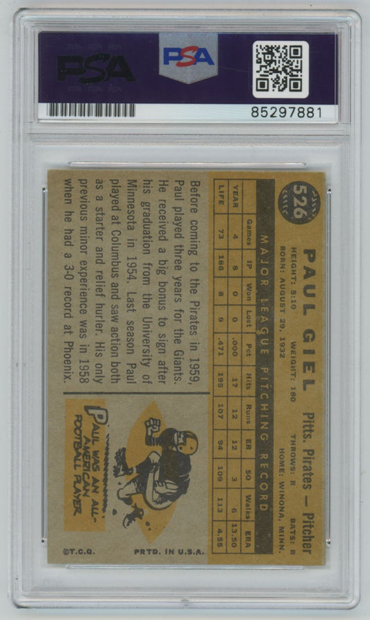 1960 Topps Paul Giel #526 Auto - PSA/DNA Authentic