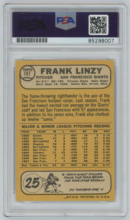 1968 Topps Frank Linzy Auto - PSA/DNA Authentic (8007)