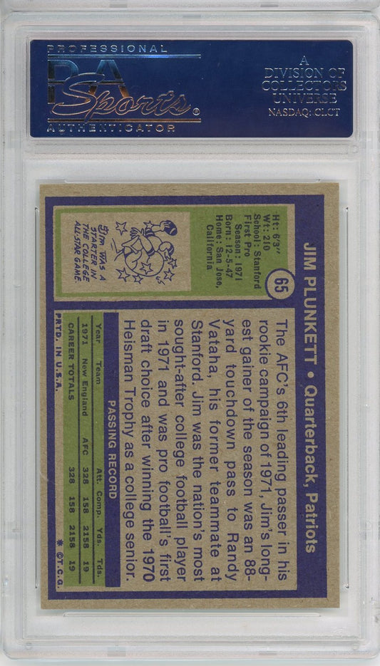 1972 TOPPS JIM PLUNKETT #65 ROOKIE CARD PSA DNA AUTO PSA 6