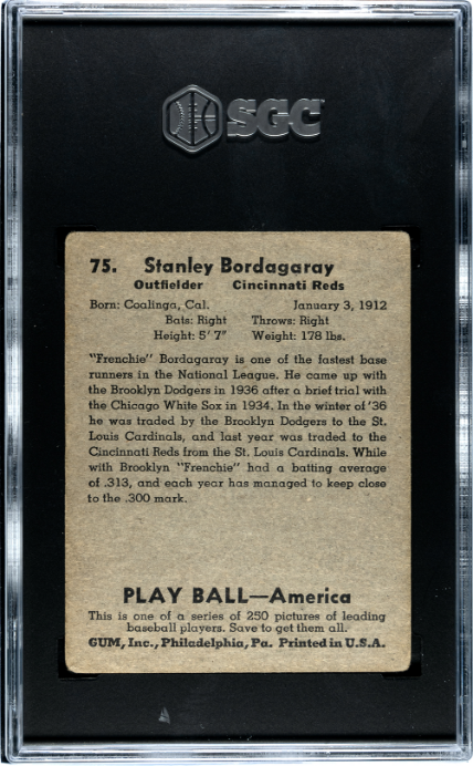 1939 Playball #75 Stanley Bordagaray SGC 2