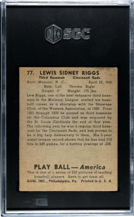 1939 Playball #77 Lew Riggs SGC 4.5