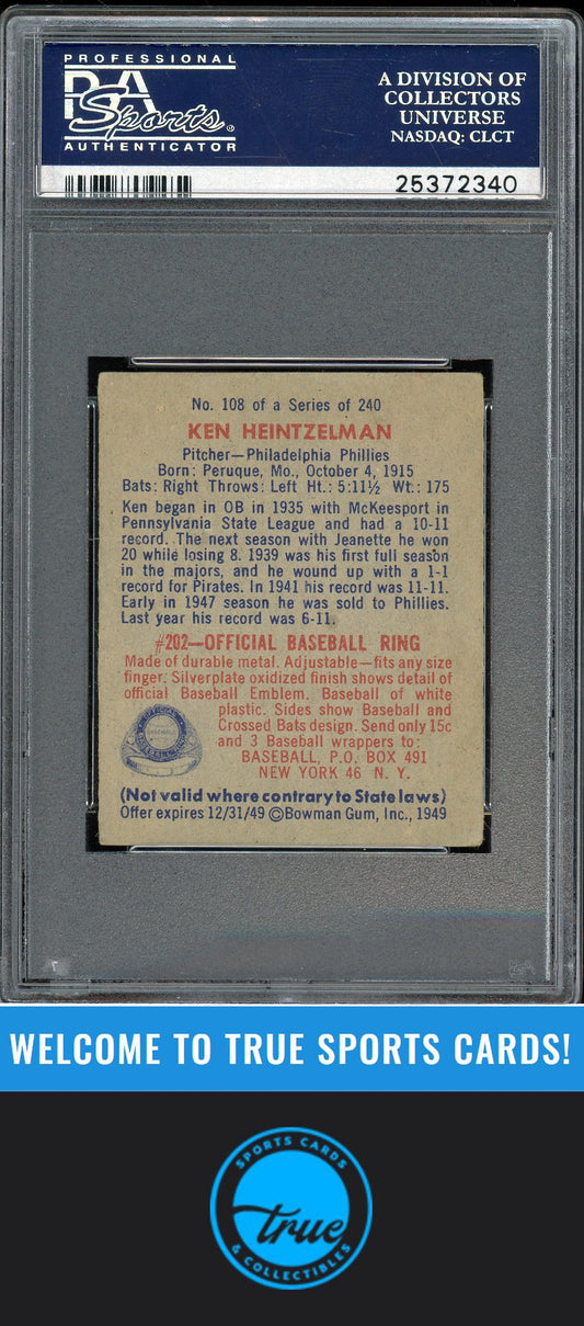 1949 Bowman #108 Ken Heintzelman PSA 4.5