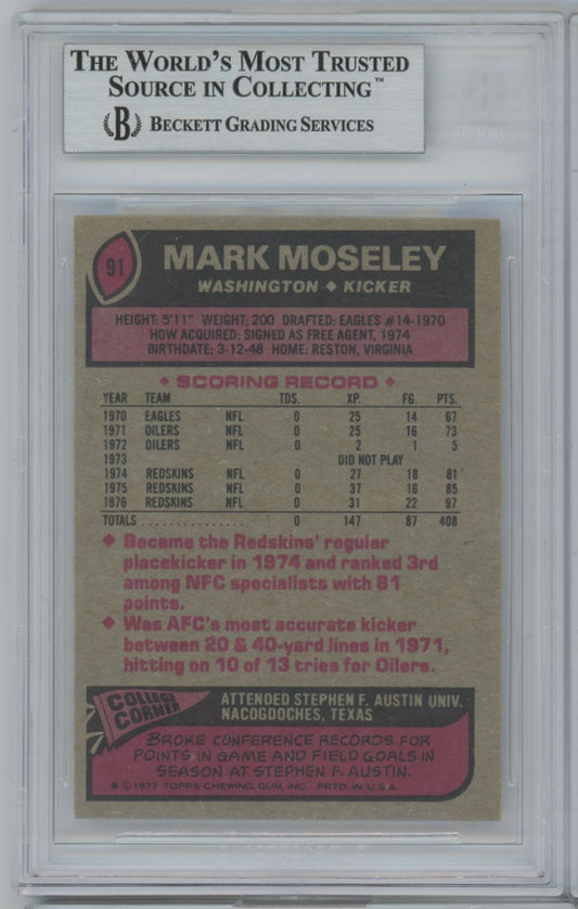 1977 Topps #91 Mark Moseley Auto - Beckett Authentic