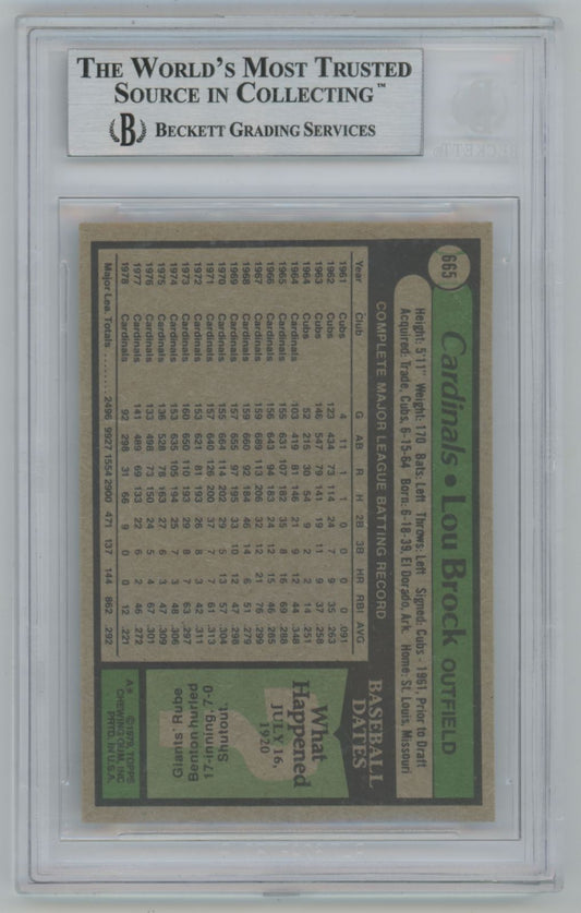 1979 Topps Lou Brock #665 Auto - Beckett Authentic