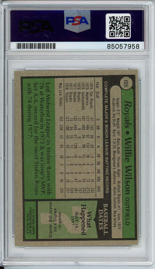 1979 TOPPS WILLIE WILSON RC #409 AUTO SIGNED PSA/DNA