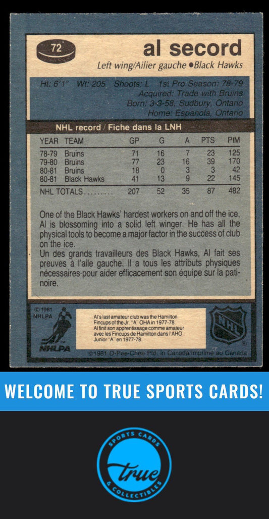 1981-82 O-Pee-Chee #72 Al Secord AUTOGRAPH