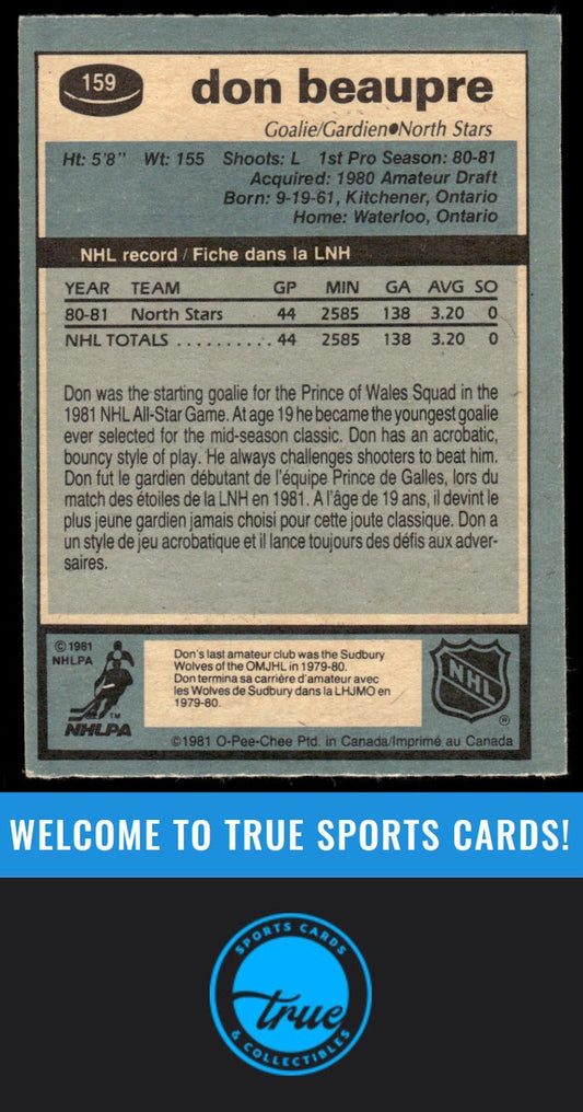 1981-82 O-Pee-Chee #159 Don Beaupre AUTOGRAPH