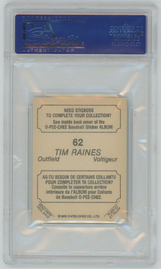 1982 O.P.C. Stickers Tim Raines #62 - PSA 9