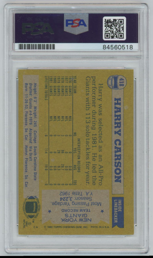 1982 Topps Harry Carson #418 Auto - PSA/DNA