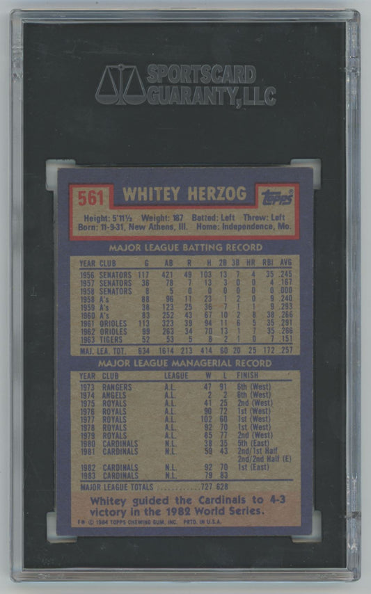 1984 Topps Whitey Herzog #561 Auto - SGC Authentic