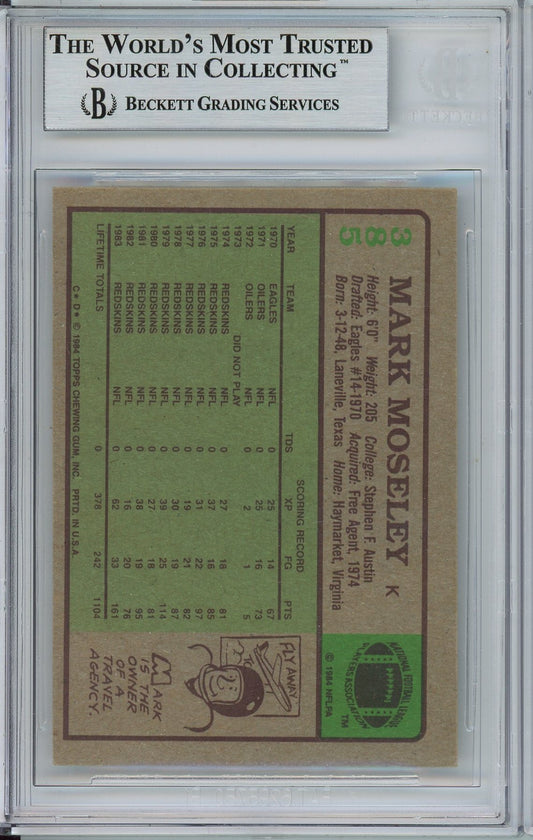 1984 TOPPS MARK MOSELEY 1983 RECORD BREAKER AUTO CARD BAS (9987)