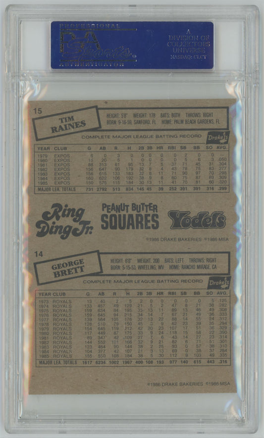 1986 Drake's George Brett / Tim Raines Hand Cut Panel - PSA 9