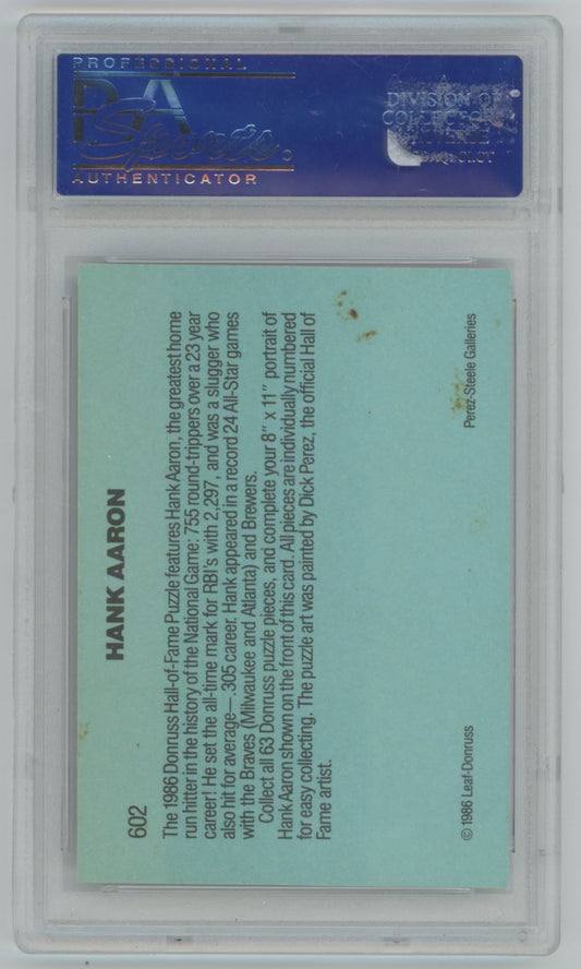 1986 Donruss Diamond King Hall of Fame Hank Aaron Auto - PSA/DNA