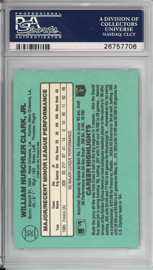 1986 DONRUSS ROOKIES WILL CLARK ROOKIE #32 PSA/DNA AUTO