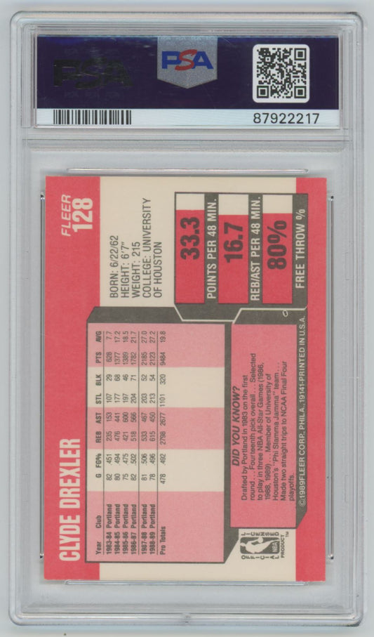 1989 Fleer #128 Clyde Drexler Auto - PSA 8/Auto 9