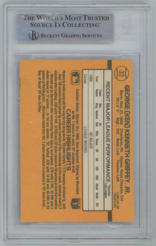 1989 Donruss #33 Ken Griffey Jr. Rated Rookie Auto - Beckett Authentic
