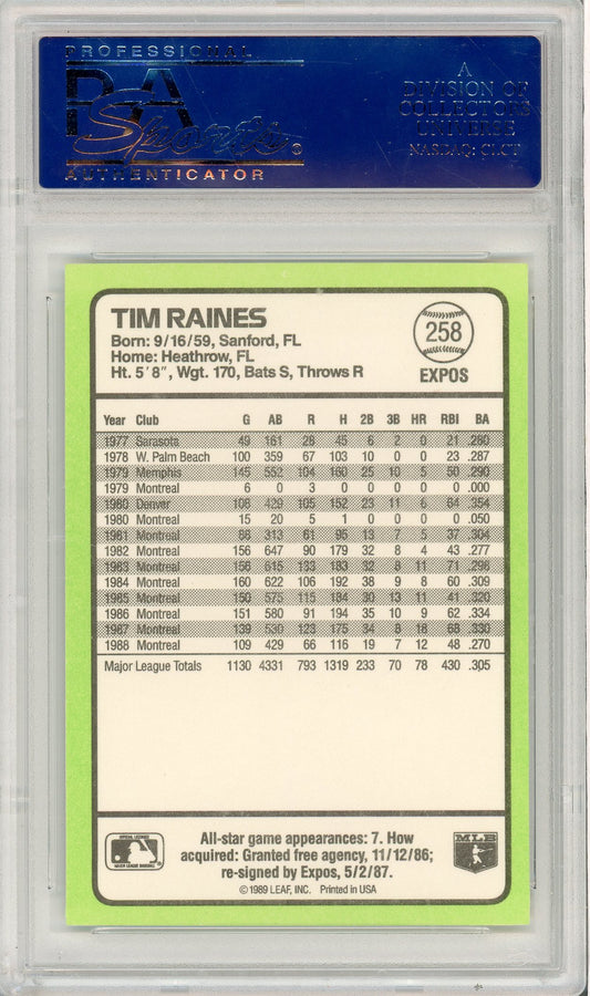 1989 DONRUSS BASEBALL TIME RAINES #258 BASEBALL'S BEST PSA 10 EXPOS