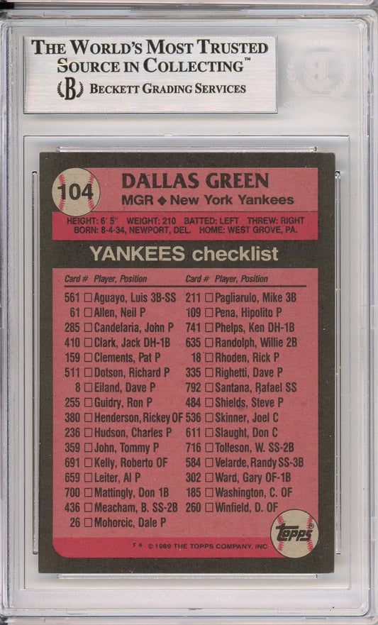 1989 TOPPS DALLAS GREEN AUTO #104 BECKETT BAS (474)