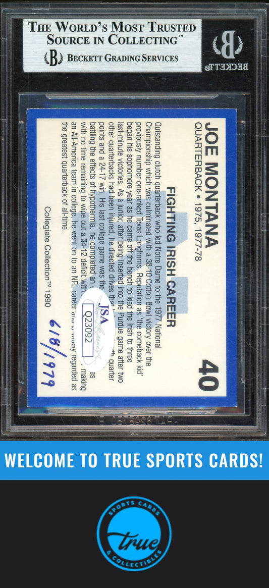 1990 Collegiate Collection Notre Dame #40 Joe Montana Auto BGS Authentic
